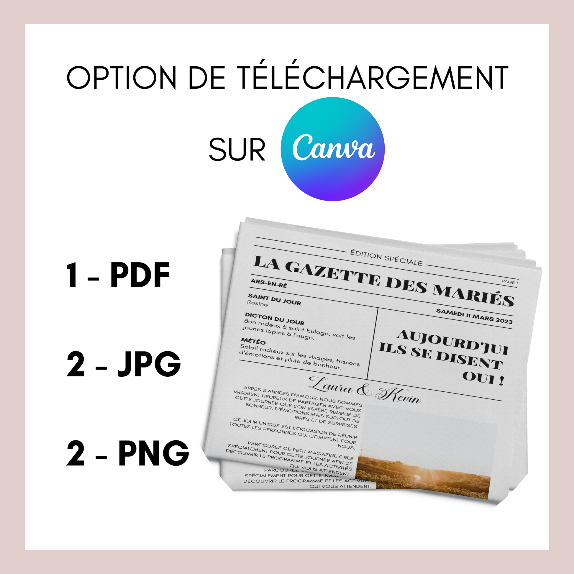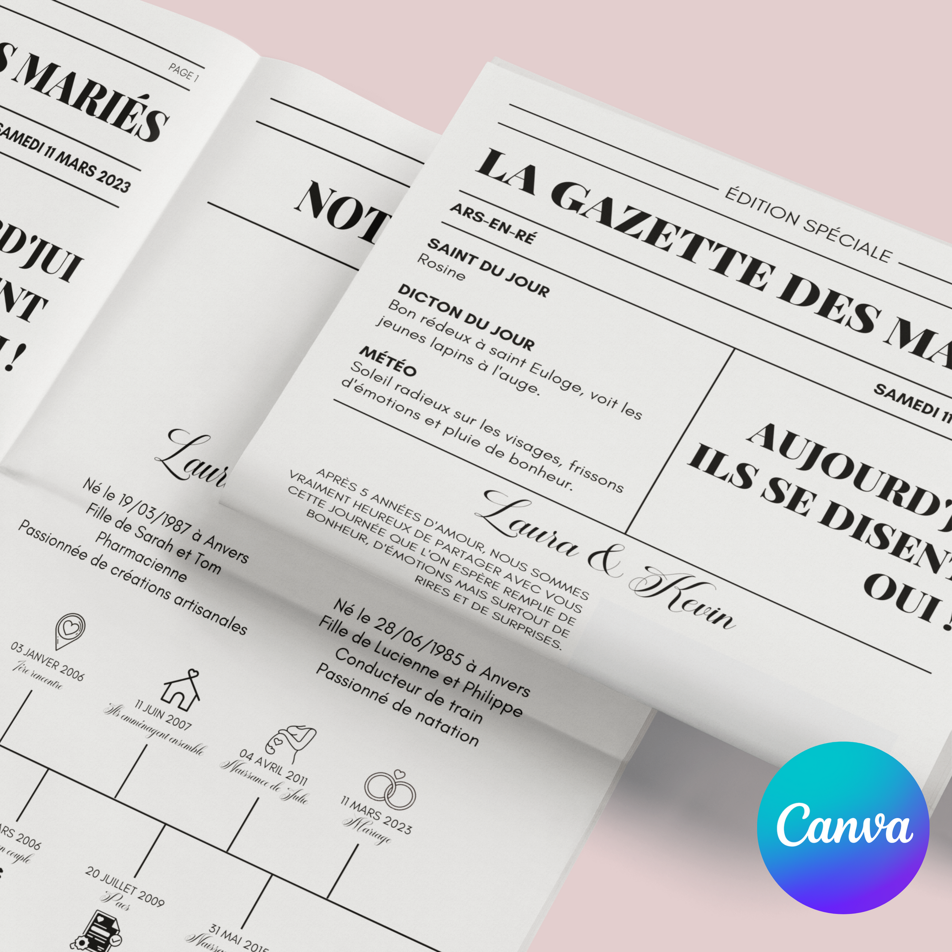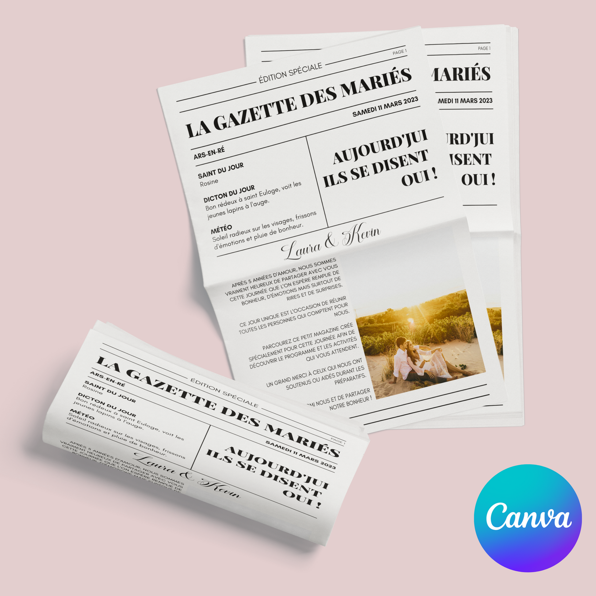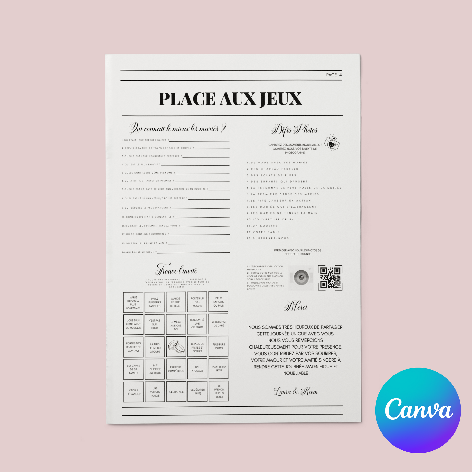 Gazette des mariés - Rendez votre Mariage Inoubliable avec notre Gazette des mariés et une Sélection de 20 Jeux à personnalisée sur Canva !