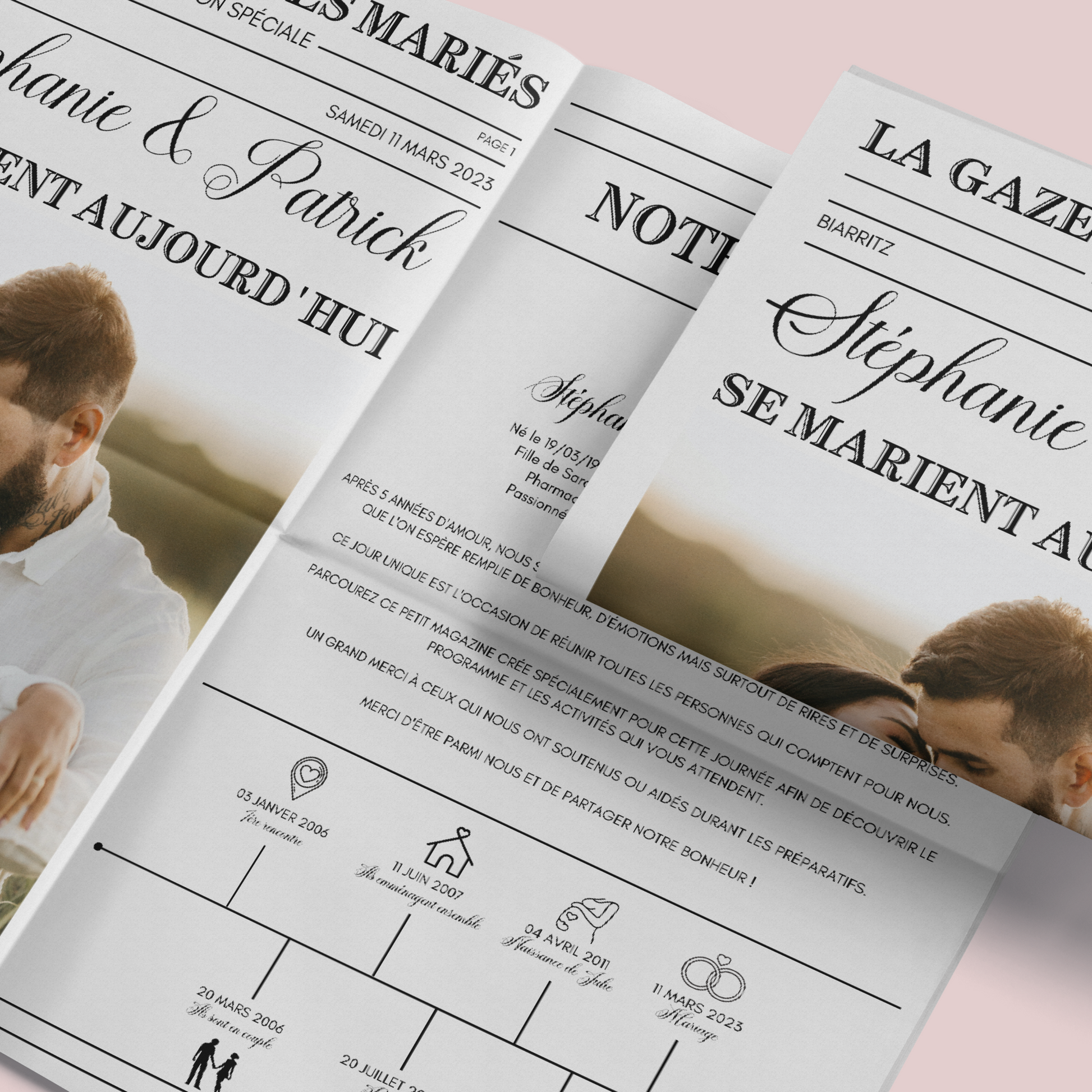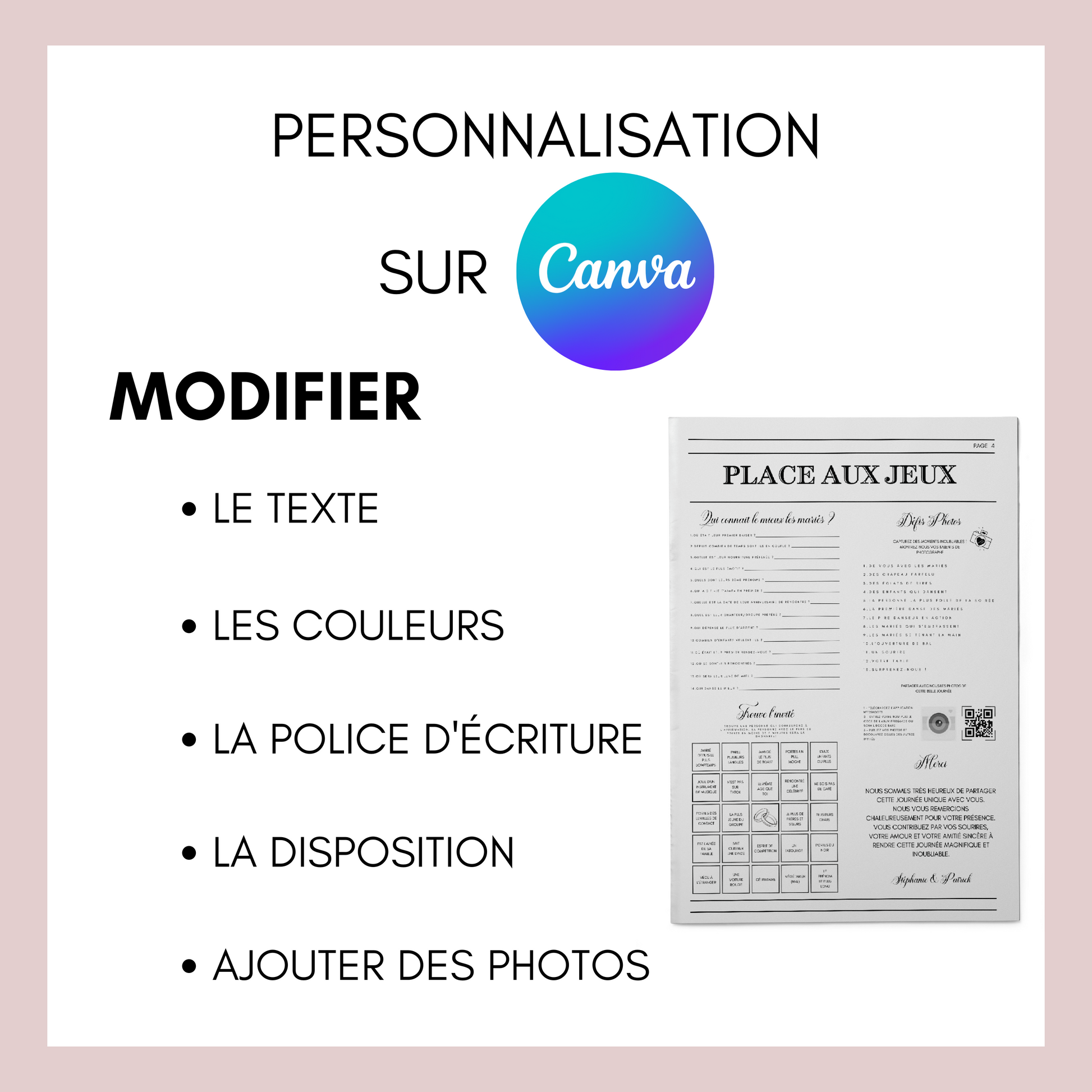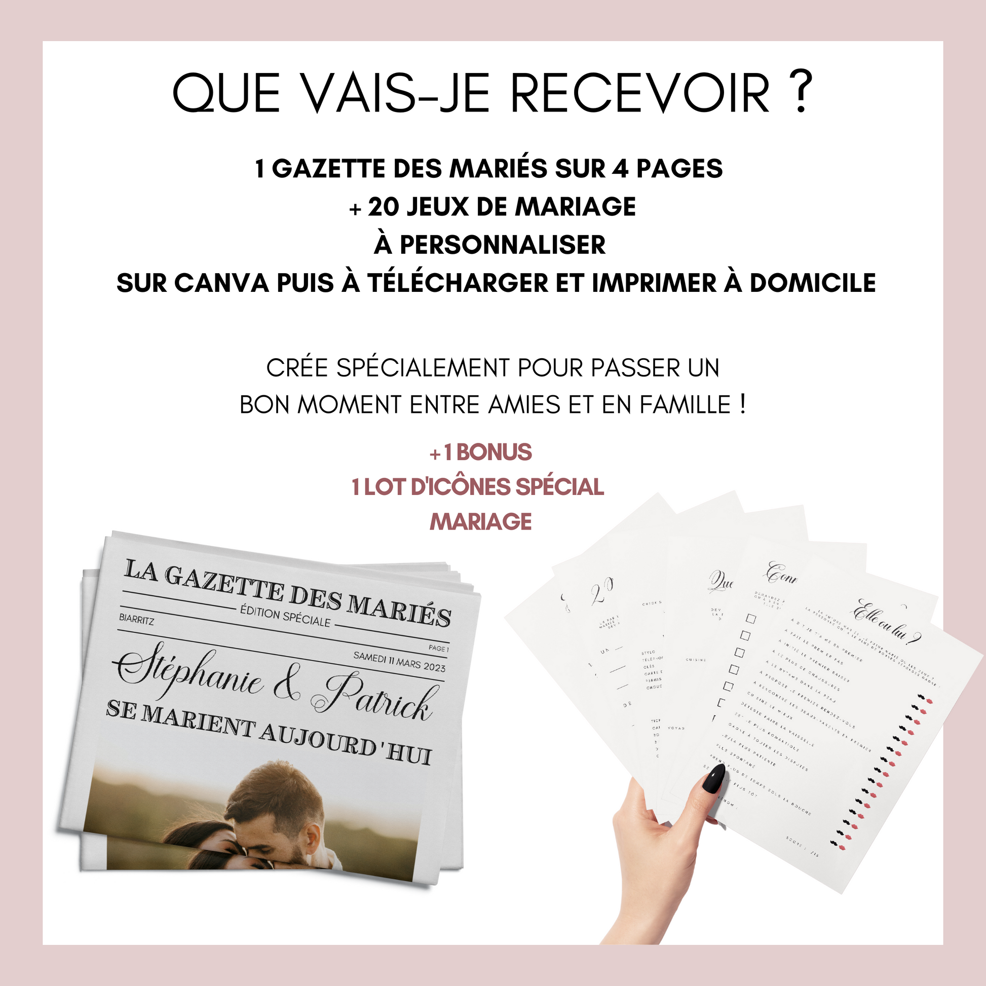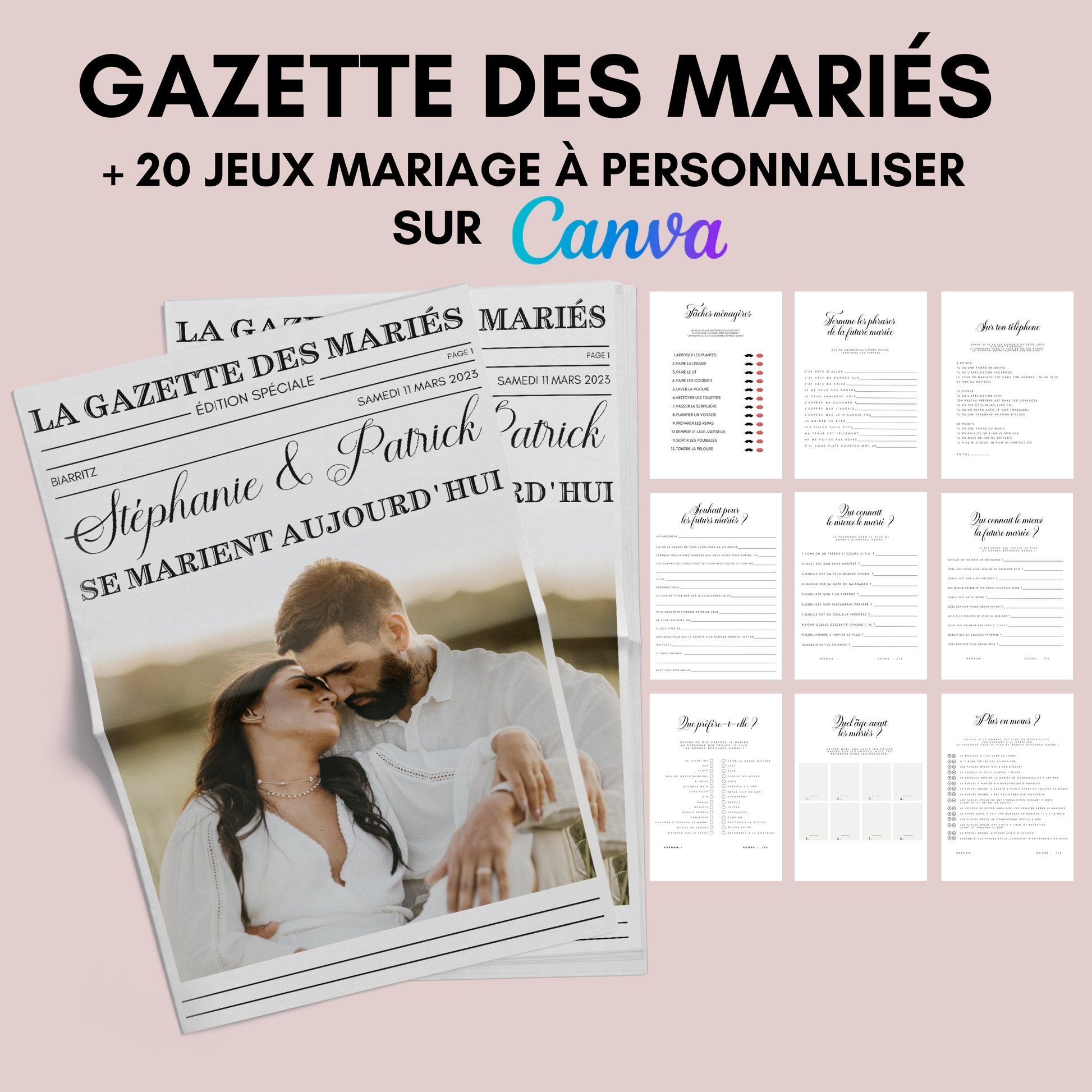 Gazette des mariés à personnalisé sur Canva et une Sélection de 20 Jeux Amusants pour vos Invités - Journal des mariés