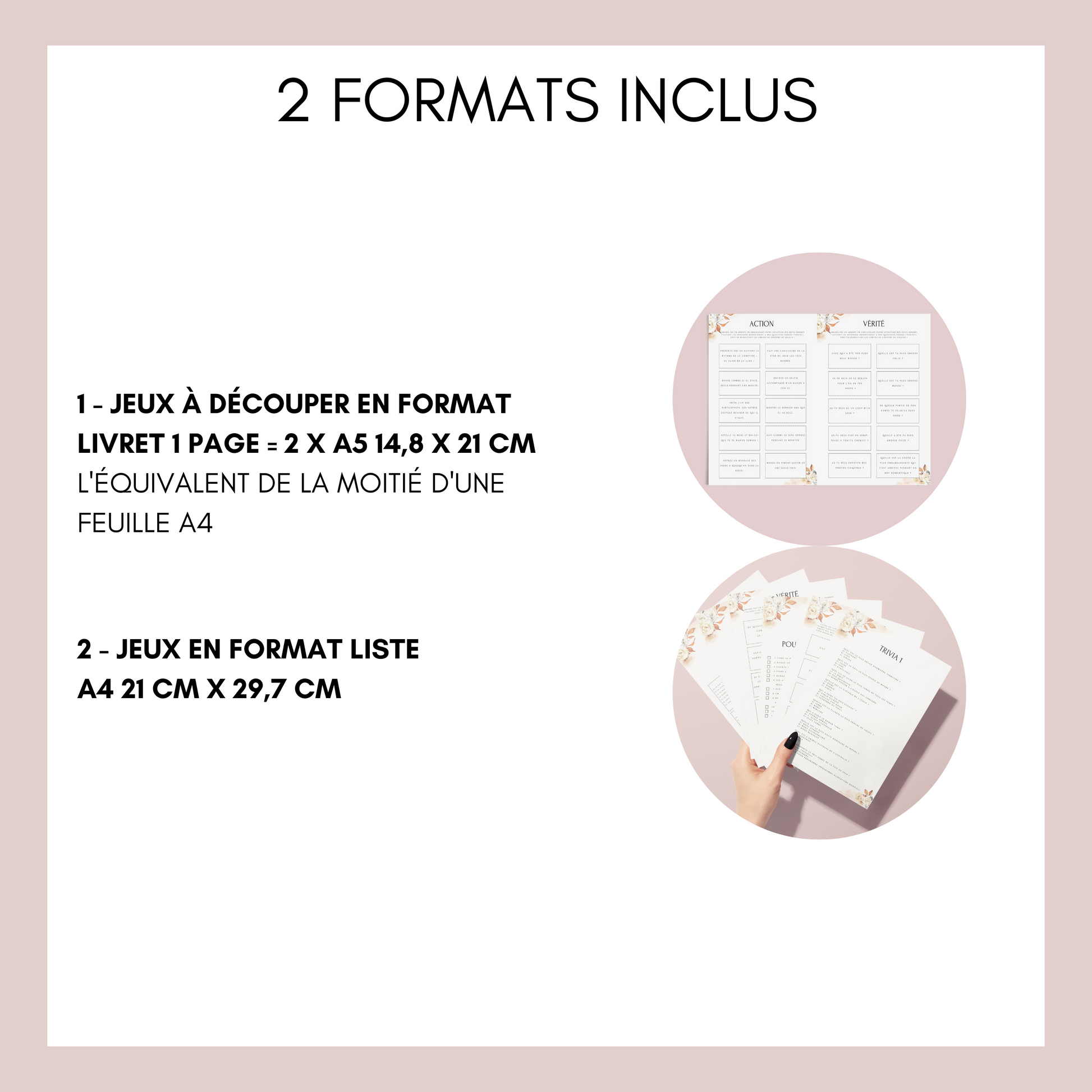 - Format A4 (21 x 29,7 cm) : idéal pour les activités de groupe